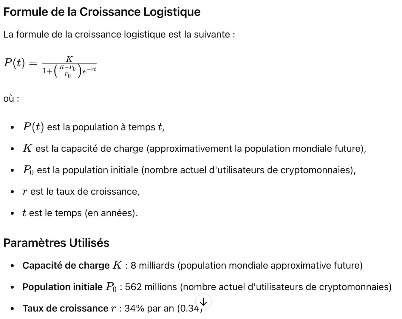 Pour projeter l'adoption des cryptomonnaies, j'ai fait tourner deux modèles distincts (via ChatGPT) : le modèle de croissance logistique puis le modèle de Bass.