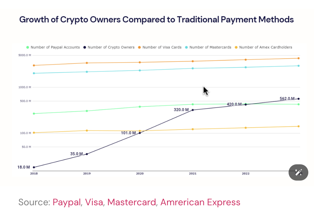 On veut souvent comparer l'adoption de la crypto, des wallets à celle d'Internet, elle est certes intéressante et informative. Elle offre certes de nombreuses similarités et suit une adoption de type exponentielle qui prend du temps ....